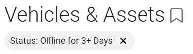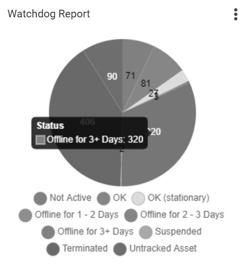 For example, in the Watchdog Report to view Offline for 3+ Days data, selecting that section of the pie chart redirects you to the Vehicles & Assets page with the devices in the report.