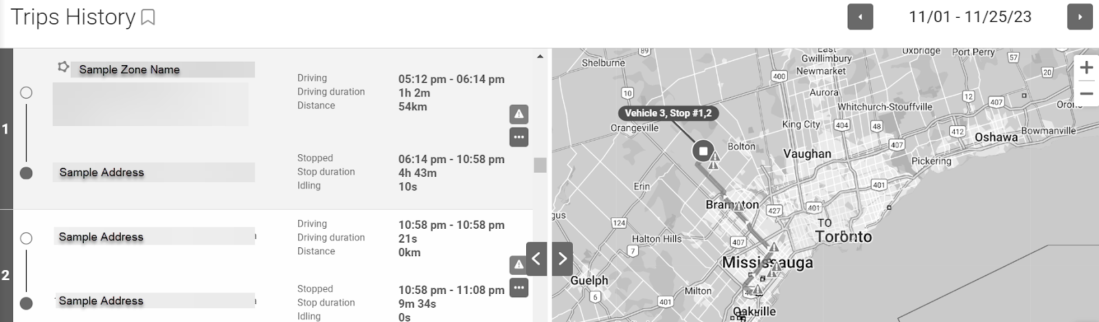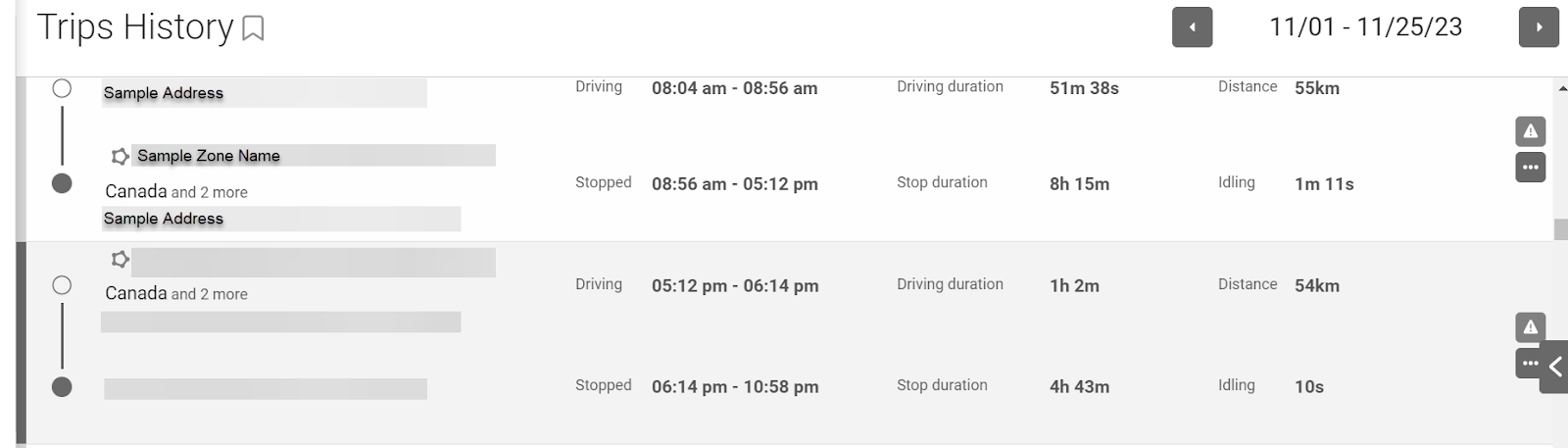 Stopped Inside Zone (location marker) | Indicates the location of an asset stop inside a company zone. Hovering over the icon displays the zone name, address, and type, as well as the asset’s arrival time. |