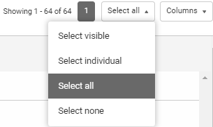 If you want to make the same changes to a number of user accounts, you can use the dropdown list in the top right corner to select multiple users. The Select individual option allows you to select multiple individuals from the user list to edit. The Select visible option will select all users in the visible list to edit. You can refine your user list using the search box in the top menu.