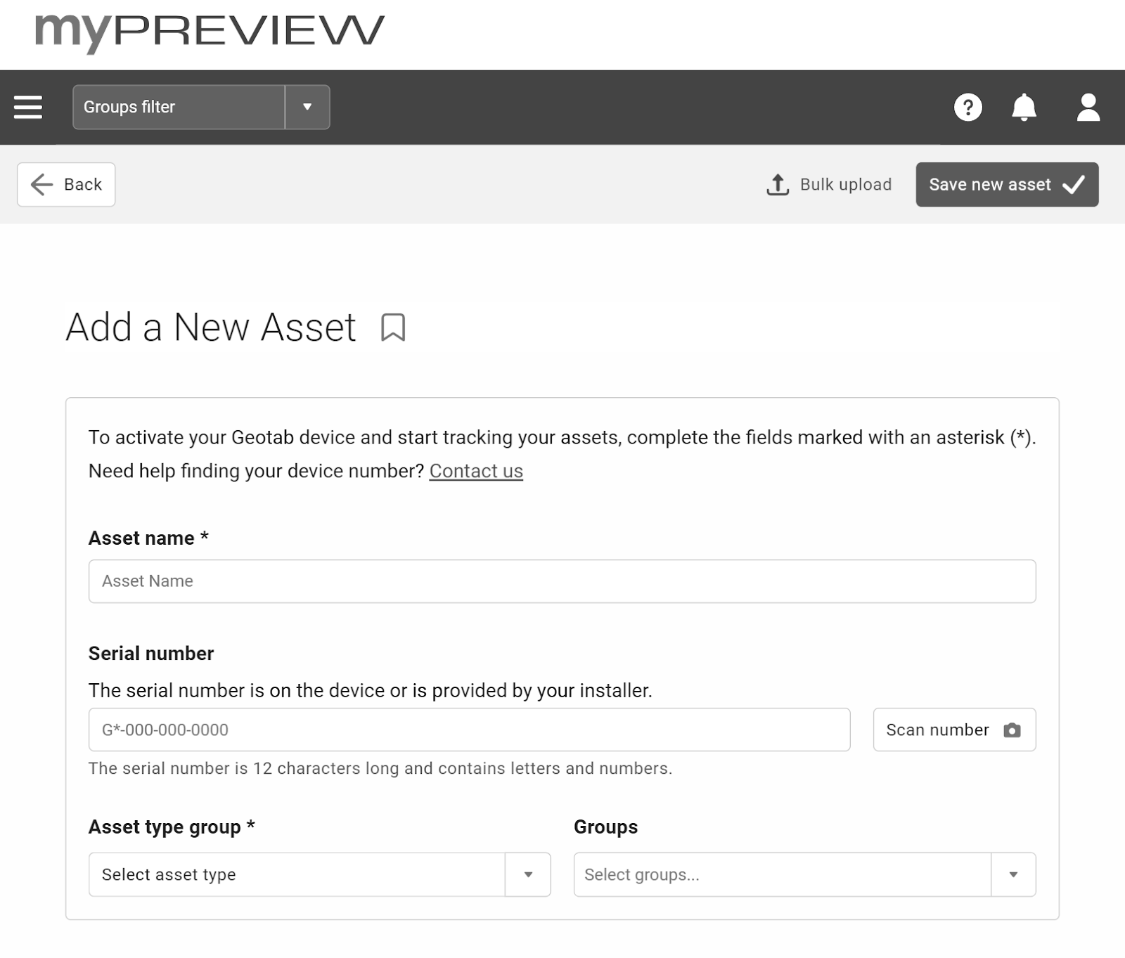 ✱ NOTE: We recommend an asset name such as [Make][Model][Year] or simply the driver’s name. |