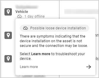 Driving (navigation arrow) | Indicates a currently driving asset. Hovering over the icon displays the asset’s location and current driving speed. |