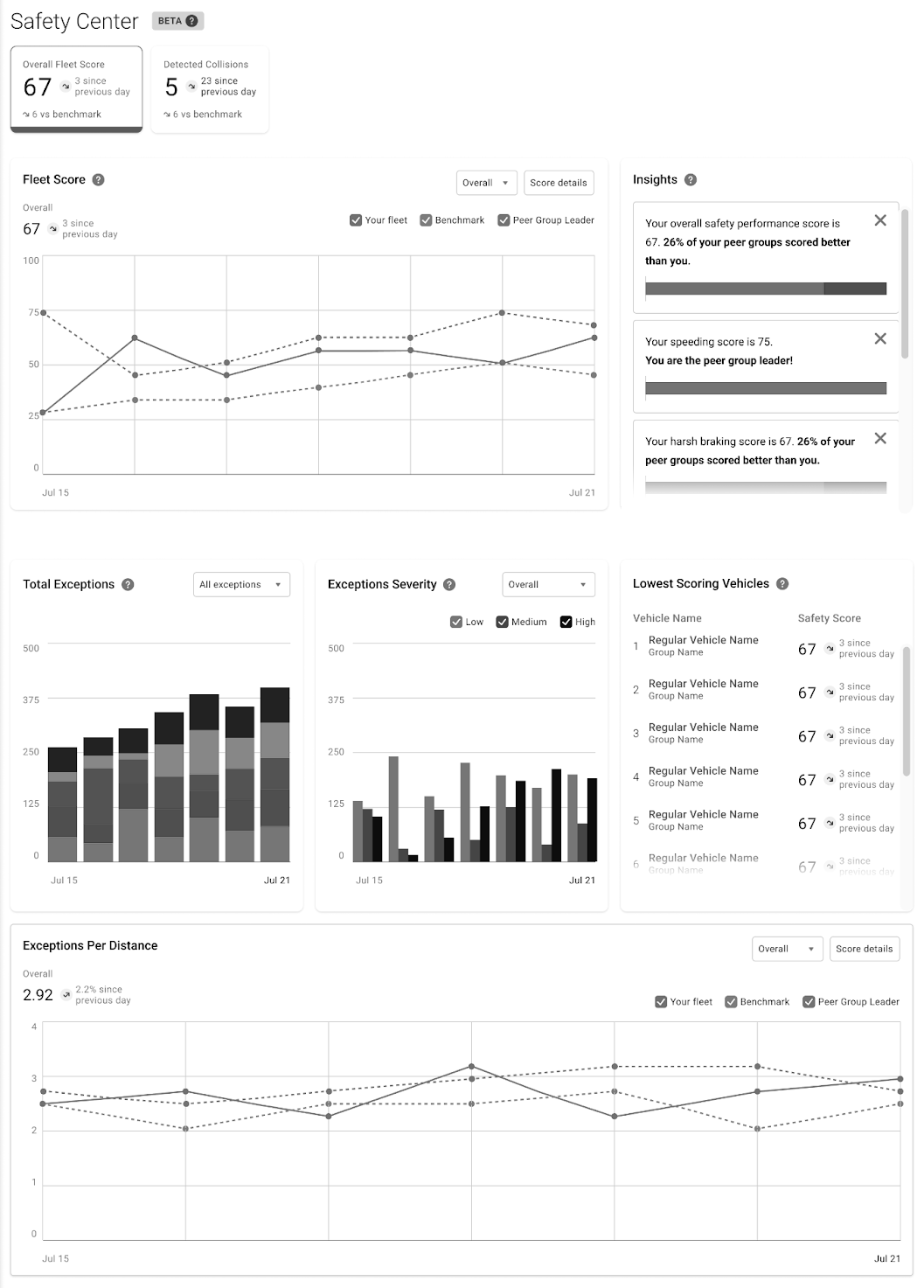 Listed below are the built-in graphics displayed on the dashboard which help establish insights to your fleet.