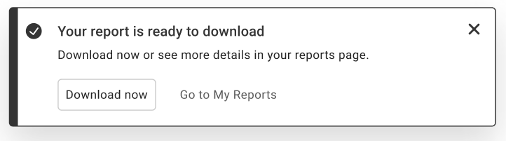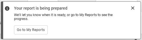 Use the My Reports page to download and save reports that are too large to be emailed. Select and download a report on your database. A notification displays indicating the progress of the report, and when it is ready to download.