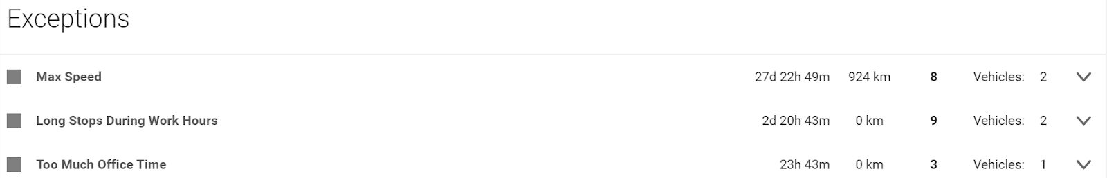 Number of vehicles | If the number of vehicles in your fleet has recently grown, you might consider splitting your report into multiple reports. |