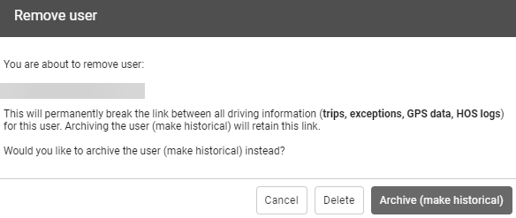 You can retain a user’s data in the system while removing them from lists of users and reports by selecting Archive (make historical) in the confirmation message box. You may consider using this option if you would like to retain the user’s data for future reporting purposes.
