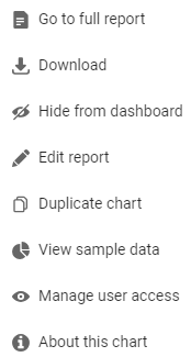 The Interactive charts allow you to view and change the data on your dashboard. Default settings are automatically added to the charts, so reports are ready to use on the dashboard when enabled.