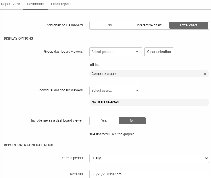 Please note that only users with Company Group access and the appropriate permissions to set up reports can view the Dashboard Wizard.